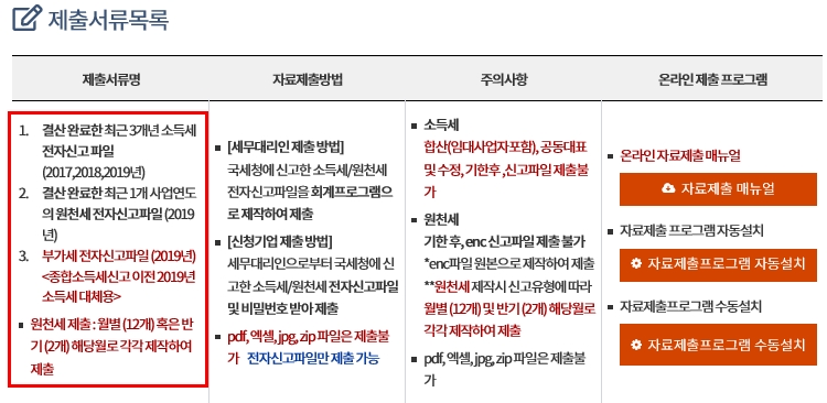 제출자료를 좀 어려워 하시는데요 세무대리인이 있는 경우 세무사무실에 보내달라고 하면 간단하게 끝납니다.