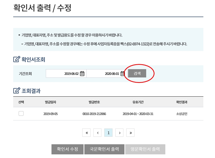 완료되었다면 소상공인 확인서를 출력하시면 됩니다.