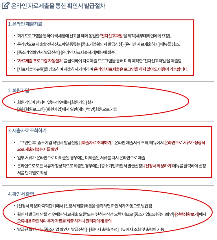 소상공인 확인서 발급 순서는 온라인자료제출, 제출자료확인, 신청서작성, 진행상황확인,확인서발급 순서입니다.